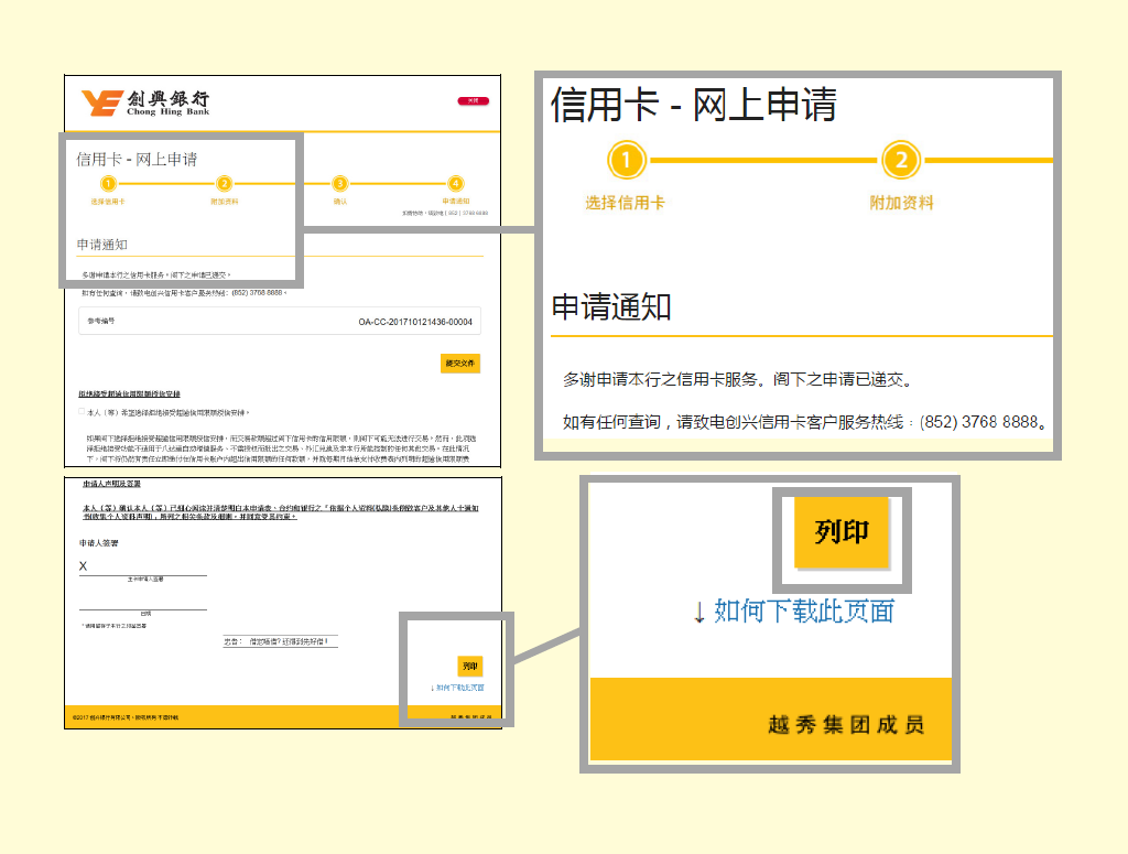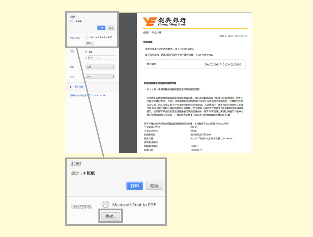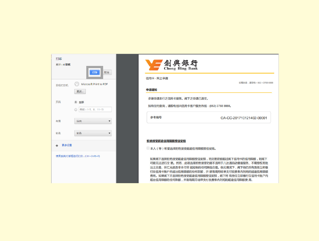 • 在通知书页面的最底部按「打印」。