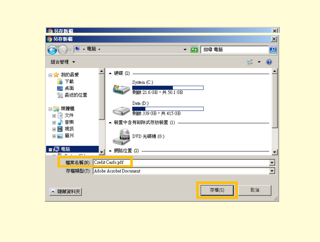 • 您可选择储存位置,亦可更改档案名称;