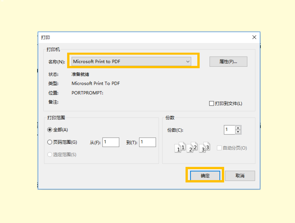 • 选择打印PDF格式的打印机(打印机名称或与图中的不相同,但打印机名称大多含有「PDF」);