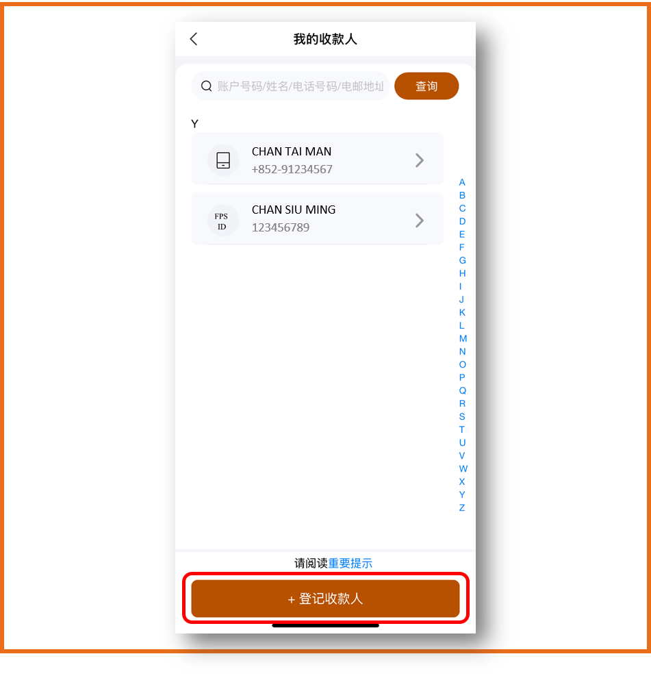 | 5. | 登记程序 a)「我的收款人」 i. 合资格客户登入创兴流动理财; b) 「高风险交易认证」: |