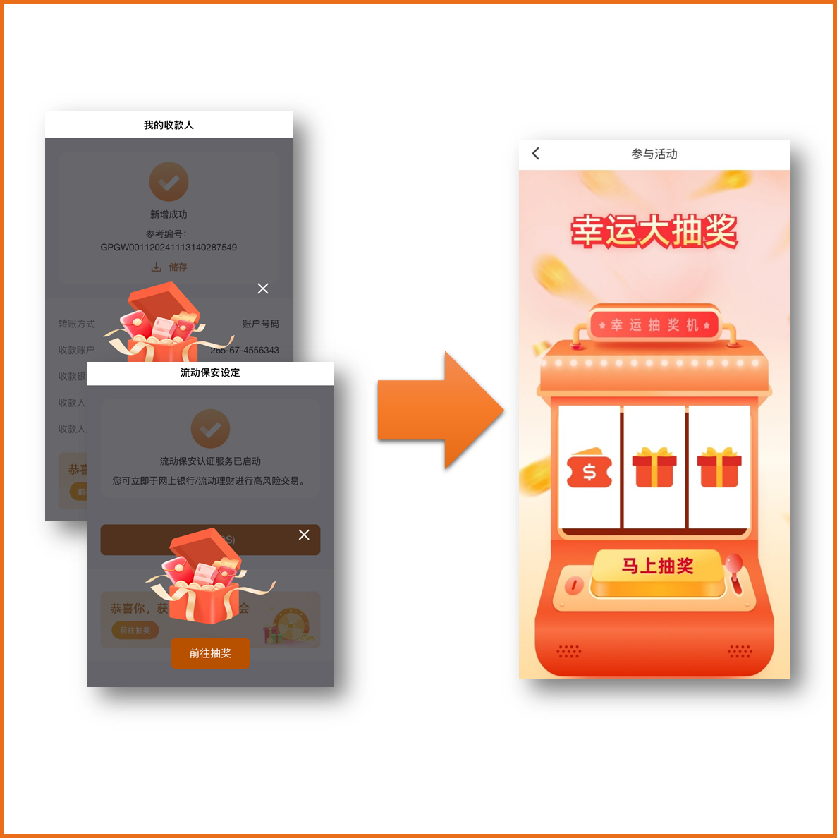 成功完成登记「我的收款人」即奖抽奖机会1次。于任何情况下,推广期内最多可获得10次抽奖机会。